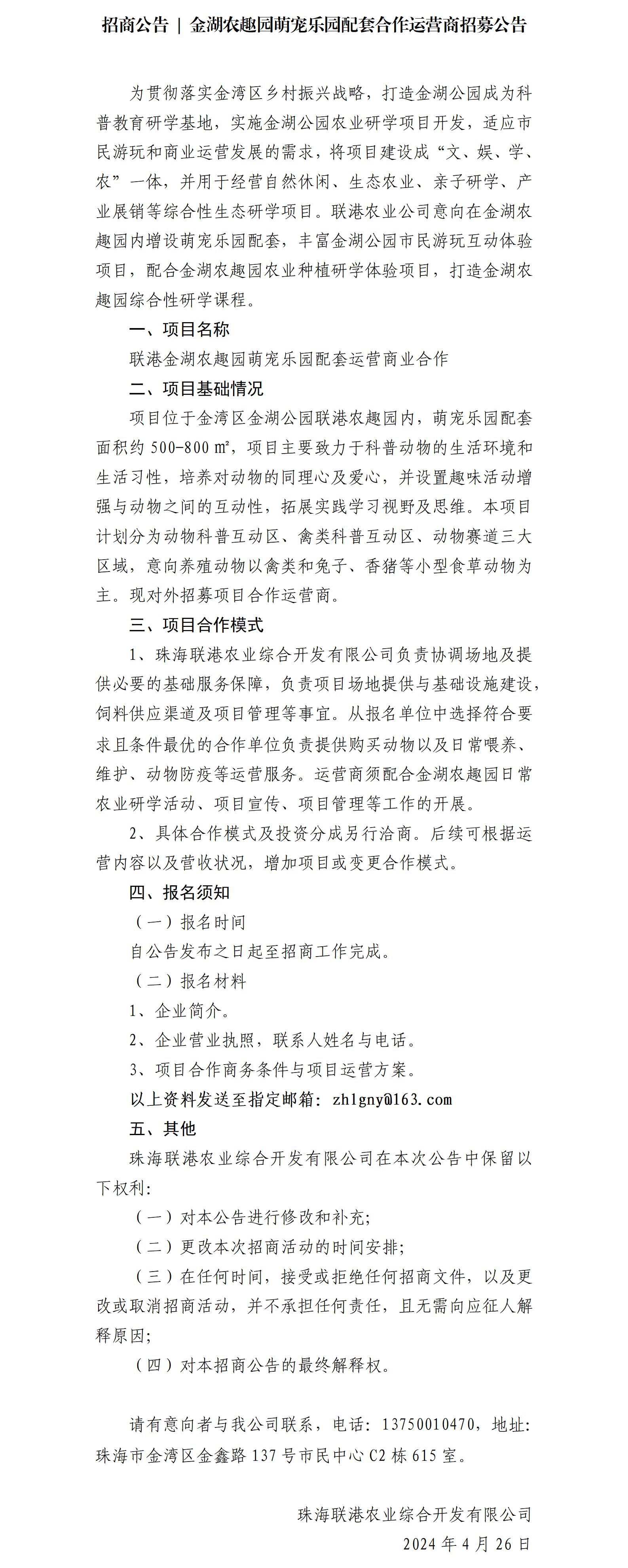 招商公告 | 金湖農(nóng)趣園萌寵樂園配套合作運(yùn)營商招募公告