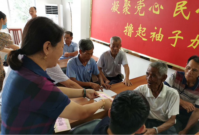 邱影副書記一行首先在潮觀村村委會(huì)與60歲以上老黨員會(huì)談,向他們送去黨組織的關(guān)懷和節(jié)日的問候,并送上慰問金。感謝他們?yōu)辄h、為人民、為村居發(fā)展的事業(yè)作出的貢獻(xiàn),叮囑他們保重身體,并帶領(lǐng)黨員們與老黨員一起重溫了入黨誓詞。