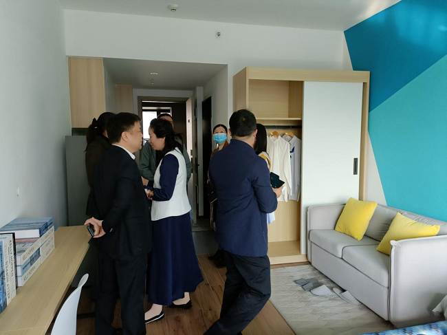 考察組一行首先來到港灣1號公館,參觀了該公司運(yùn)營管理的保障性住房樣板房,詳細(xì)了解配置標(biāo)準(zhǔn)、租賃情況以及租金標(biāo)準(zhǔn)等情況,并參觀了解公寓的智能化管理、物業(yè)服務(wù)思路和現(xiàn)狀。