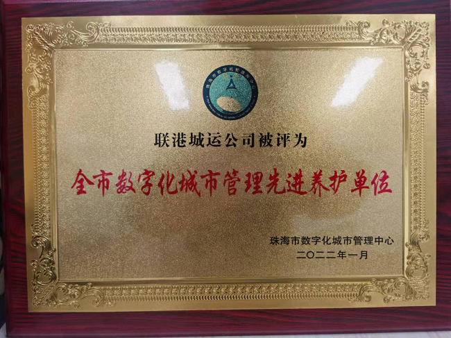 1月27日,珠海市數(shù)字化城市管理中心根據(jù)2021年度珠海市全市各養(yǎng)護(hù)單位案件結(jié)案率及結(jié)案及時性等方面進(jìn)行年度綜合評分,根據(jù)評分結(jié)果授予我公司“2021年度珠海市數(shù)字化城市管理先進(jìn)養(yǎng)護(hù)單位”稱號。