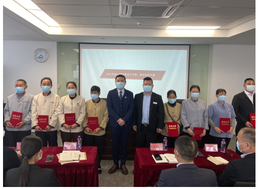 會(huì)上,龍總與資產(chǎn)公司班子成員對獲得2021年度優(yōu)秀員工、崗位標(biāo)兵和疫情防控先進(jìn)個(gè)人稱號(hào)的代表頒發(fā)了證書,并在會(huì)后同他們親切合影留念。