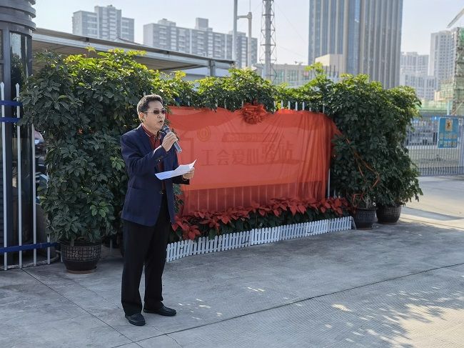 來自聯(lián)港城運(yùn)綠化部的陳婷作為戶外勞動者代表發(fā)言,愛心驛站的建設(shè)是分享,也是共享,傳遞愛心,傳遞暖意,感謝區(qū)總工會和集團(tuán)工會為大家創(chuàng)造了如此美好的“暖心之家”,讓他們享受到“熱可納涼、冷可取暖、累可歇腳、渴可飲水”等服務(wù)。
